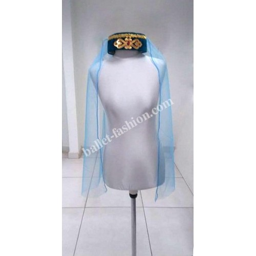 Thaditional Tatar skullcap made of velvet and decorated with gold applique, braid and crystal goes with net veil attached.