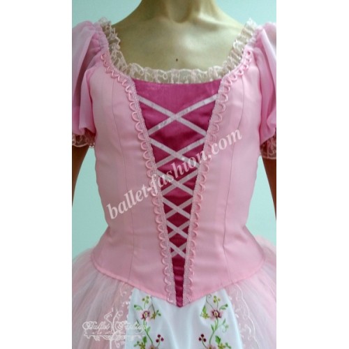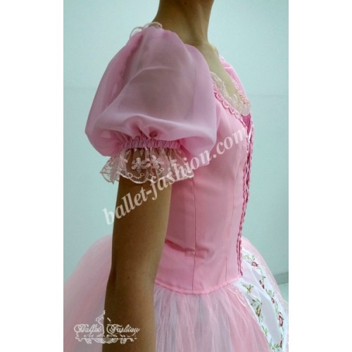 This beautiful dress in peasant style was created especially for the role of Lise in "La Fille mal gardée" ballet but alo can be used in the other peasant style variations.
