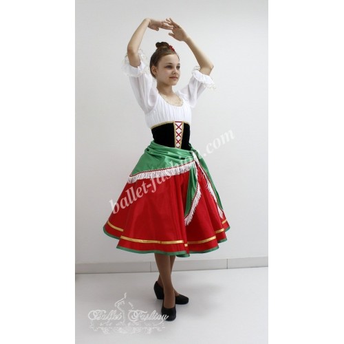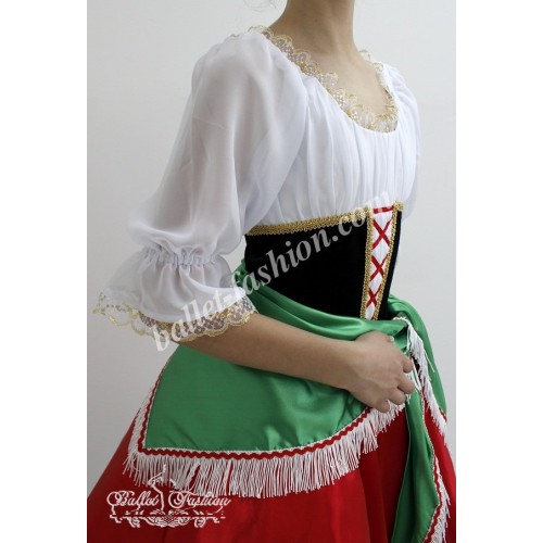 This costume was created especially for Tarantella variation but can be used in other peasant style variations.
