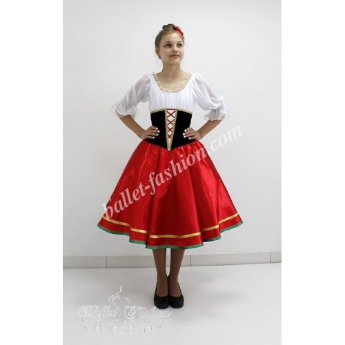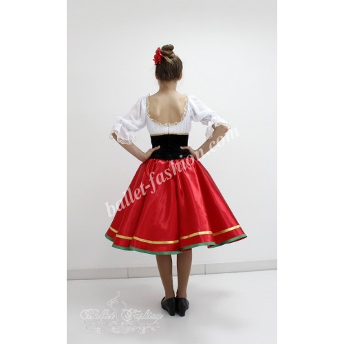 This costume was created especially for Tarantella variation but can be used in other peasant style variations.