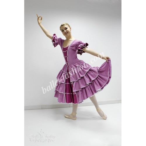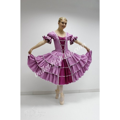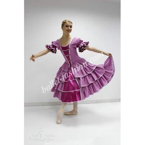 The upper layer of the skirt is made of the same fabrics as the bodice. Lower layers of the skirt are made of soft tulle.