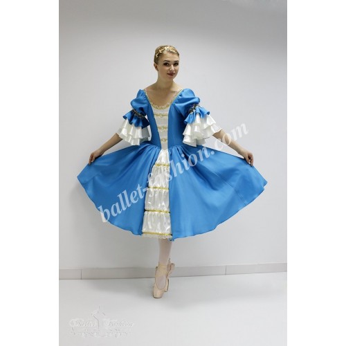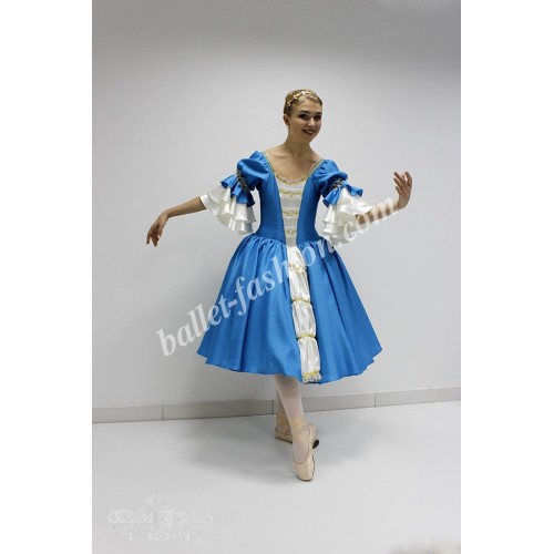 The upper layer of the skirt is made of the same fabrics as the bodice. Lower layers of the skirt are made of soft tulle.