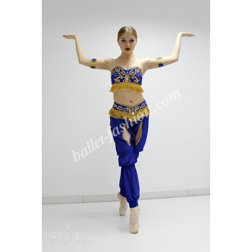 This stunning ballet costume is carried out in most exquisite oriental traditions. The bodice is short-cut and it is carried out apart from the skirt which should be worn on hips. The bodice as well as the belt of the trousers is made of the semi-stretched fabric.