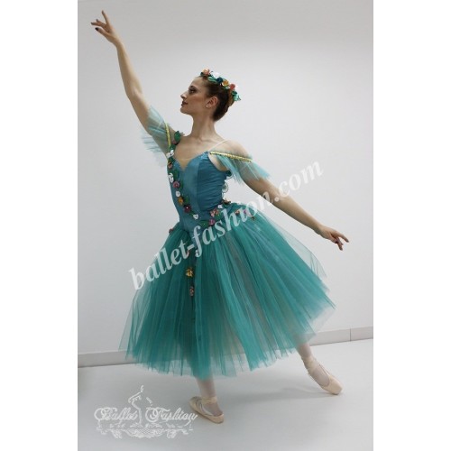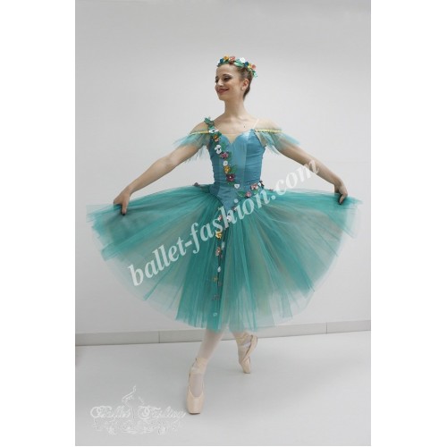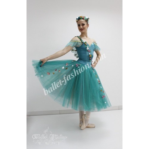 Professional stage costume based on romantic tutu skirt made of soft tulle.