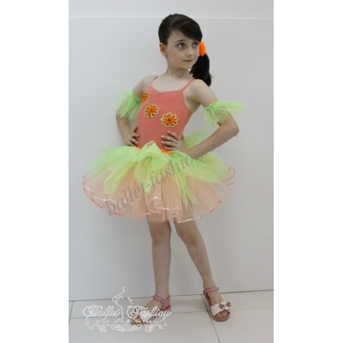 Details: tutu-skirt, leotard, arm ruffles