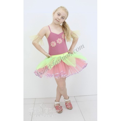 Tutu skirt is made of 3 layers of rigid tulle. The skirt is on elastic band. Overlay of the skirt is made of soft tulle and imitates the form of petals.