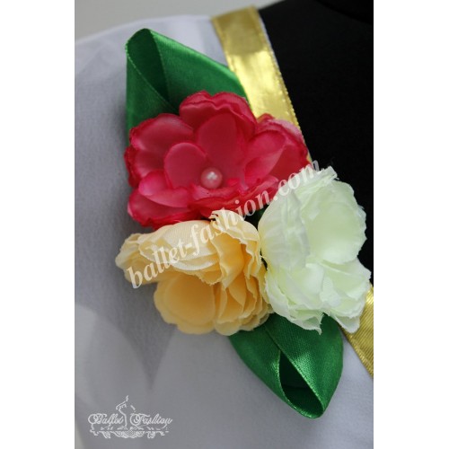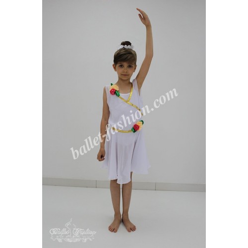 Chiffon chiton with the imitation of golden belt and gold braid on the V neck line. Chiffon dress is decorated with beautiful flowers.