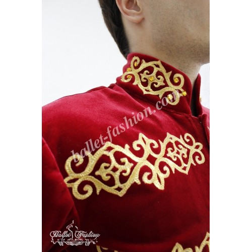 The tunic is richly embellished with golden decor elements, such as appliqués and buttons.  The decorated band-collar and the cuffs impart the costume an original look.