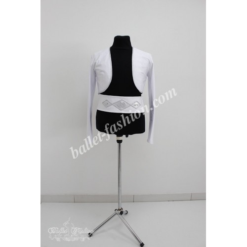 Costume made of supplex fabric. Bolero with long sleeves is decorated with silver braid.
